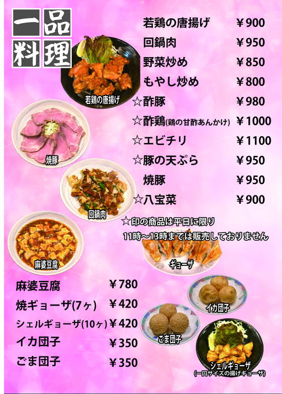 一品料理menu